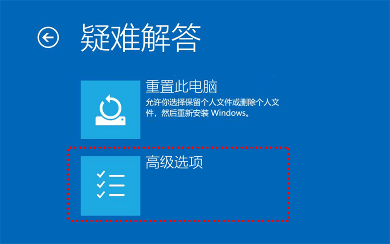 3. 從屏幕中選擇"高級(jí)選項(xiàng)"。