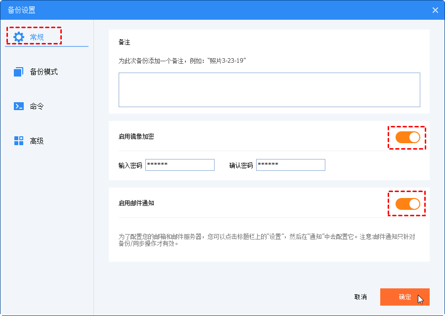 步驟5. 確認(rèn)目標(biāo)路徑后,我們可以在備份開始之前更改設(shè)置。單擊底部的“選項(xiàng)”,將看到如下的彈出窗口。