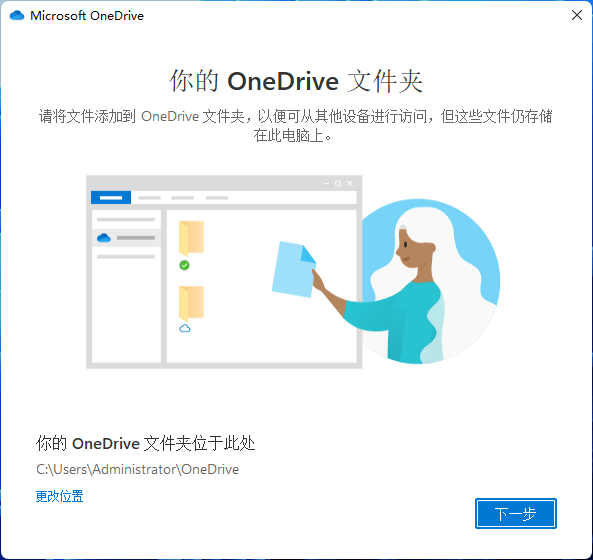 4.完成設置向導后,您的OneDrive即可使用且設置已完成。 單擊“打開我的OneDrive文件夾”。將要備份的文件/文件夾拖放或復制并粘貼到OneDrive文件夾中??蛻舳藢⒆詣訉⑺鼈兺降絆neDrive網(wǎng)站。