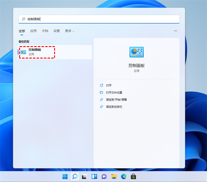 1.單擊任務欄中的搜索圖標(放大鏡)。鍵入“控制面板”并單擊搜索結果。
