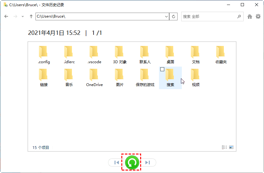 備份完成之后,如果某一天您需要恢復(fù)備份中的文件的話,請(qǐng)?jiān)俅未蜷_(kāi)文件歷史記錄窗口,點(diǎn)擊底部的“從當(dāng)前備份還原文件”,然后選擇您想要恢復(fù)的備份版本,再點(diǎn)擊“恢復(fù)按鈕”即可輕松還原。