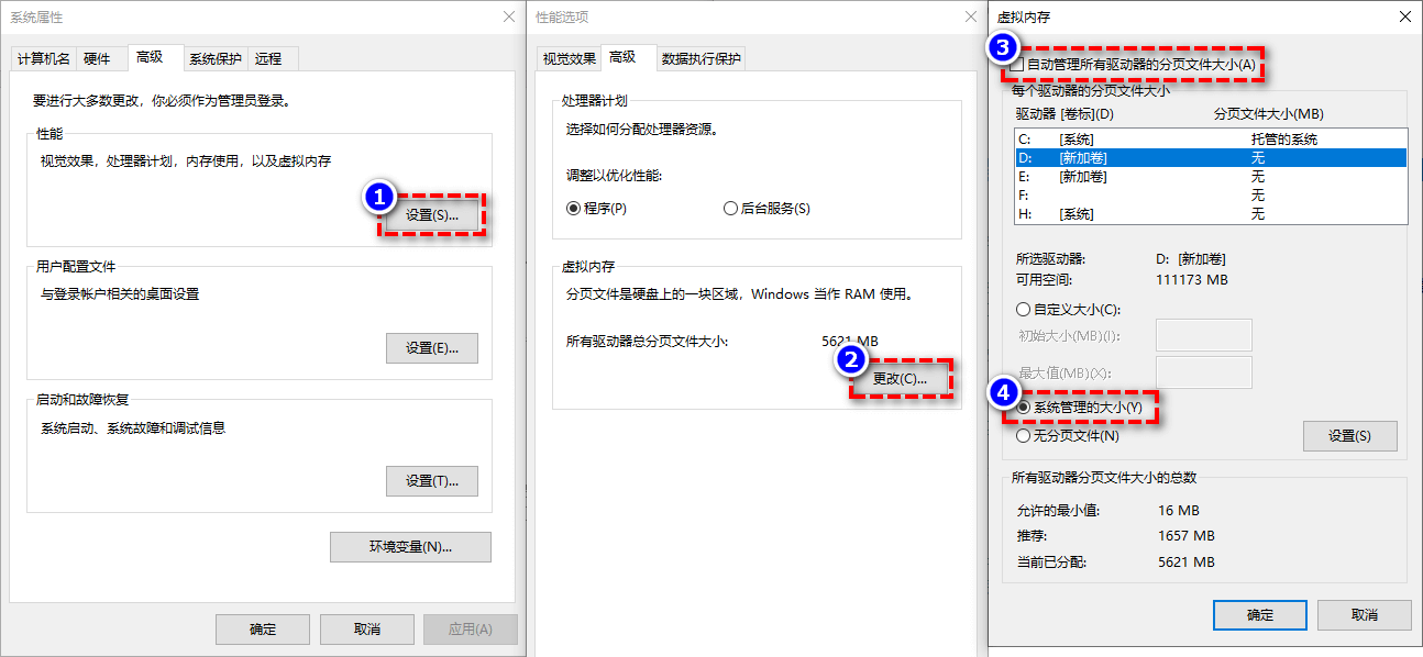 但是它會占用較多的C盤空間,您可以選擇虛擬內(nèi)存移動到其他磁盤,從而騰出更多C盤空間。