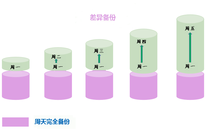 差異備份只在上次完全備份的基礎(chǔ)上備份有更改和新增的數(shù)據(jù)。因此,通過每日差異備份,您可以: