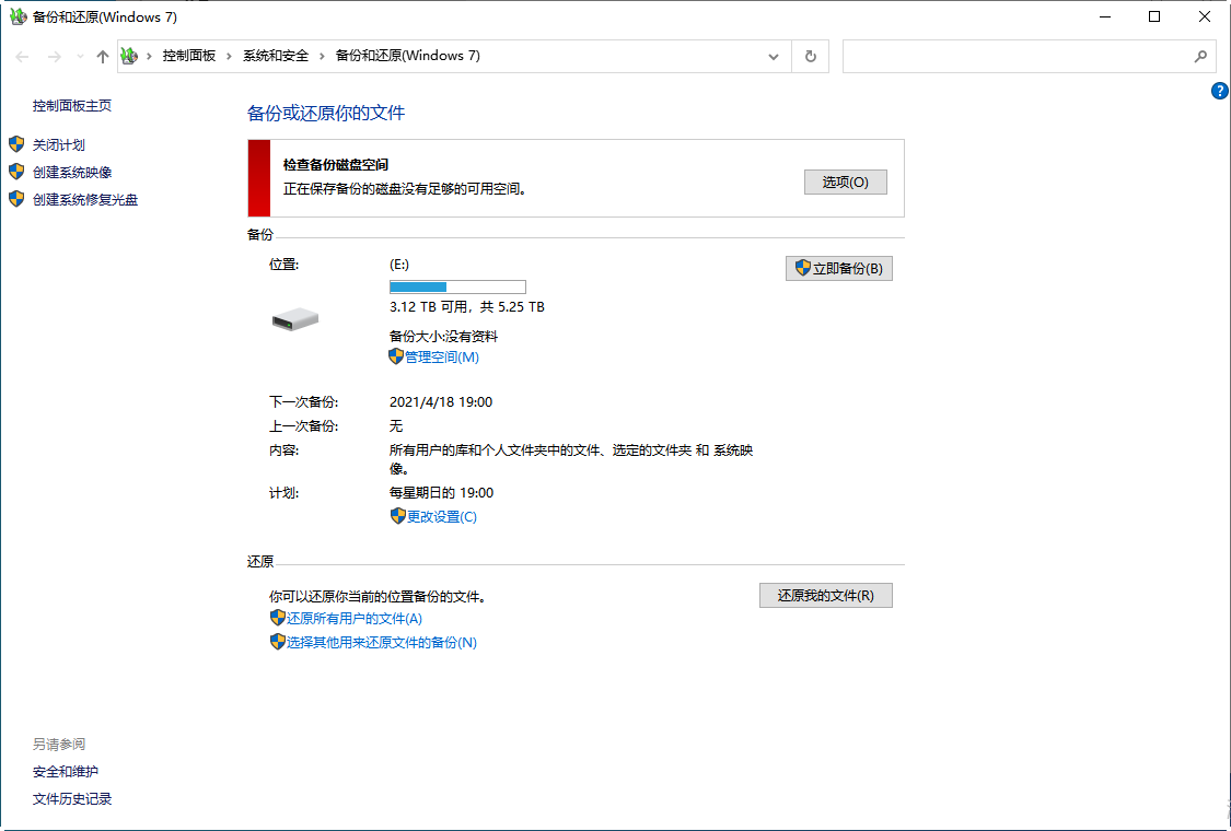 備份和還原這個(gè)方法也可以備份電腦文件,甚至和其他工具相比,它還可以創(chuàng)建系統(tǒng)映像備份。這個(gè)工具備份后需要還原才可以查看備份的文件且備份得到的目標(biāo)文件不能移動(dòng),否則在還原的部分將提示找不到文件、沒有可用備份。那么使用這個(gè)方法電腦備份資料怎么備份?