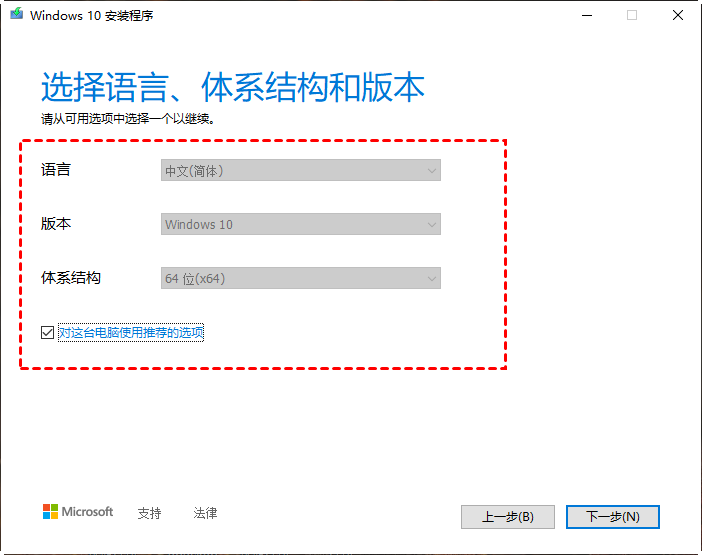 4. 選擇新系統(tǒng)的語言、版本和體系結(jié)構(gòu),取消勾選“對這臺電腦使用推薦的選項(xiàng)”。