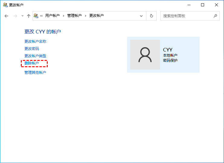至此,Win10刪除賬戶的任務(wù)就已完成。知道了Win10怎么刪除賬戶(普通)后,再繼續(xù)看Win10怎么刪除管理員賬戶就很簡(jiǎn)單了。