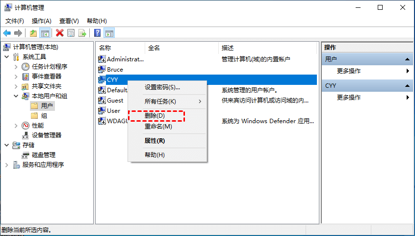 ? 提示:還可以在“計(jì)算機(jī)管理”中執(zhí)行Win10刪除賬戶任務(wù)。