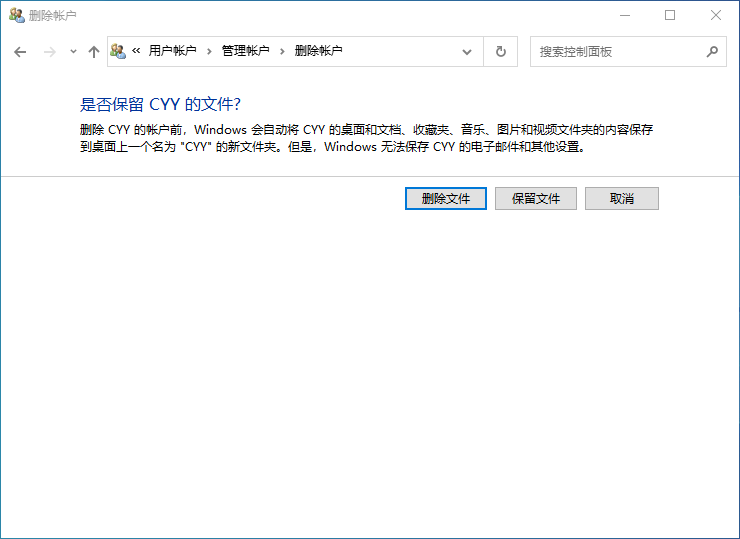 步驟5. 接下來您需要選擇Win10怎么刪除賬戶:即選擇是否保留賬戶下的文件。您可以選擇只刪除賬戶保留文件,也可以選擇將賬戶和賬戶下的文件都刪除。