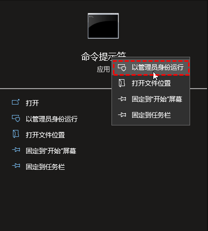步驟1. 在搜索框中輸入“cmd”或“命令提示符”,然后在結(jié)果中選擇“以管理員身份運(yùn)行”。