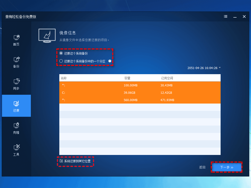 步驟3. 選擇還原方式,然后點擊“下一步”。