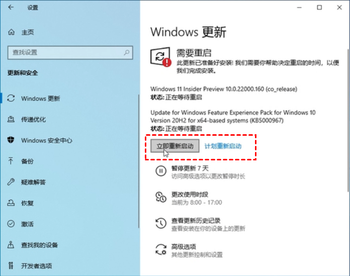 步驟6. 等待下載完成后選擇“立即重新啟動”或“計劃重新啟動”。重啟后您將看到Win11桌面,至此升級Win11操作已完成。