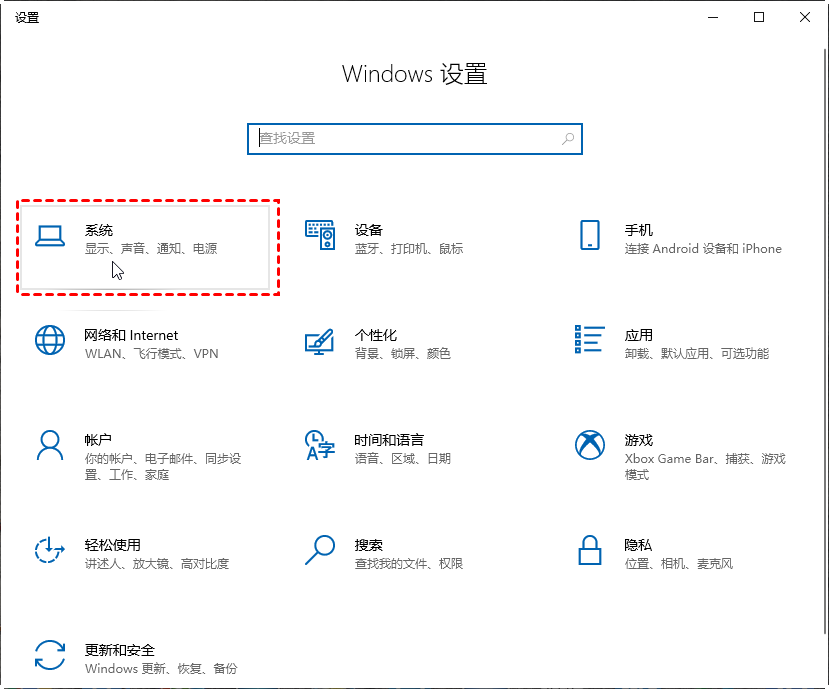 步驟1. 右鍵點(diǎn)擊開(kāi)始圖標(biāo)然后選擇“設(shè)置”,在Windows設(shè)置界面中點(diǎn)擊“系統(tǒng)”。