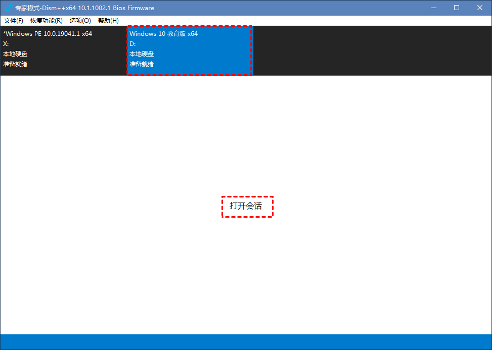 步驟3. 在工具界面切換到電腦上的Windows 10操作系統(tǒng)。并點擊下方的“打開會話”。