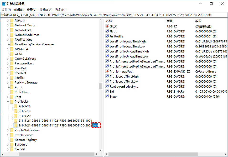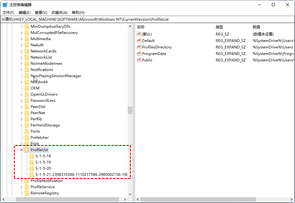 HKEY_LOCAL_MACHINE>SOFTWARE>Microsoft>Windows NT>CurrentVersion>ProfileList 。然后,你將在ProfileList文件夾中看到一個SID列表。