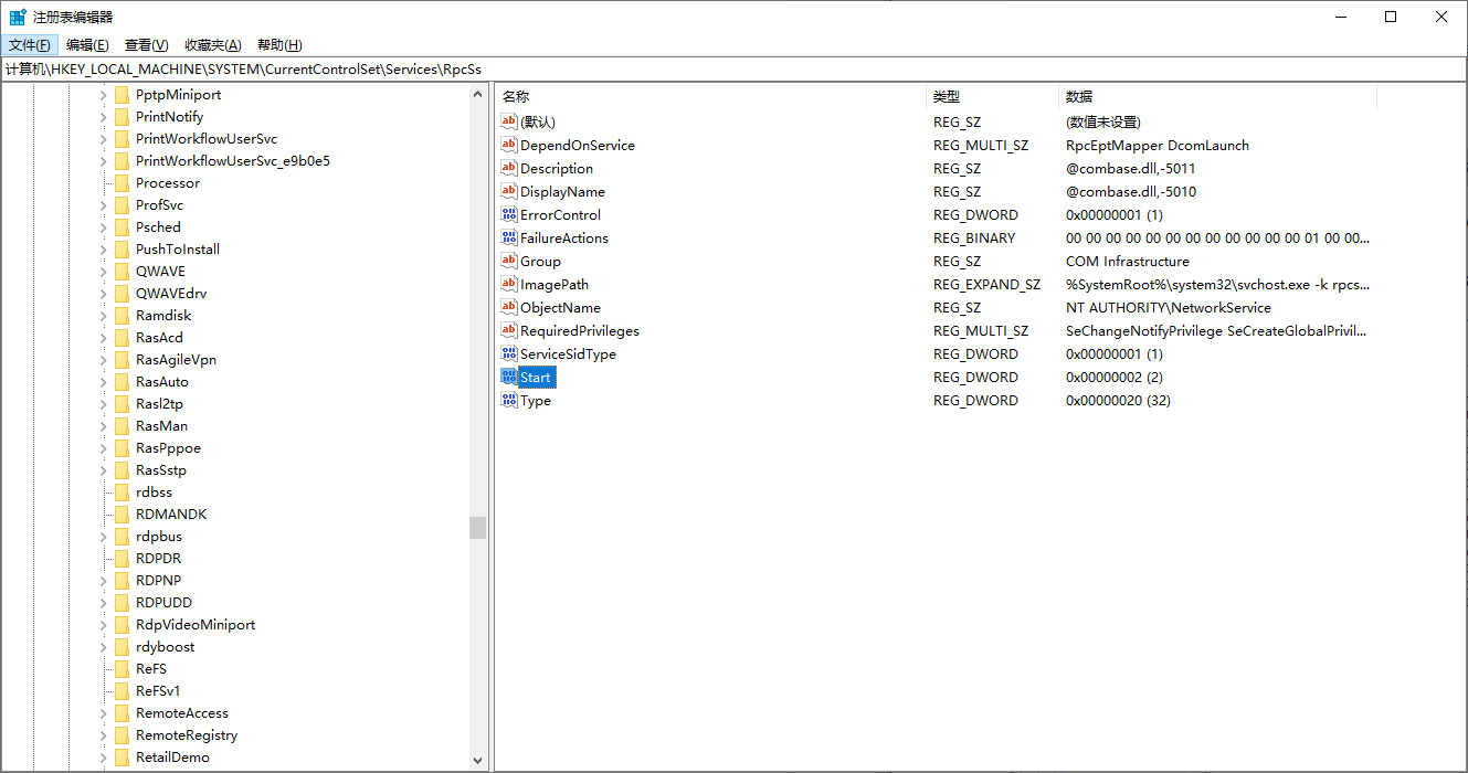 HKEY_LOCAL_MACHINE\SYSTEM\CurrentControlSet\services\RpcSs