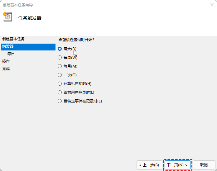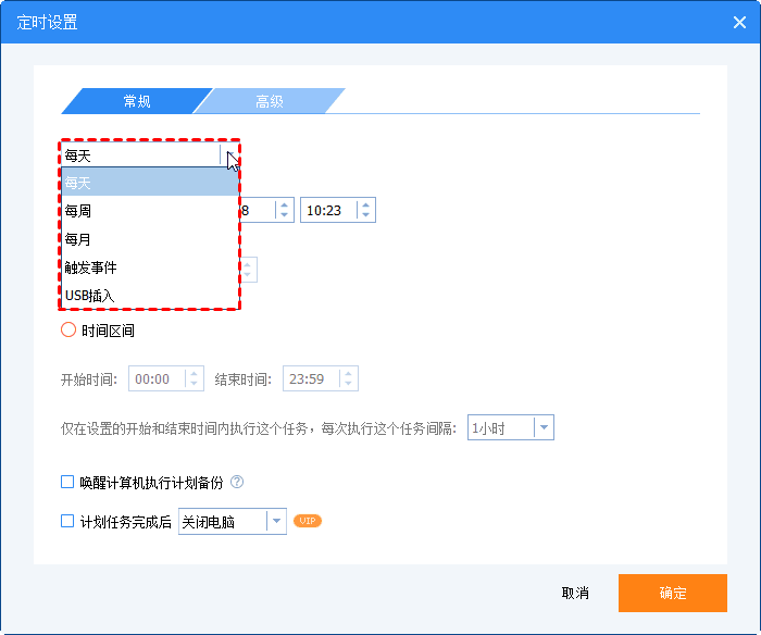 4. 在彈出的窗口中,選擇任務(wù)運行的頻率。
