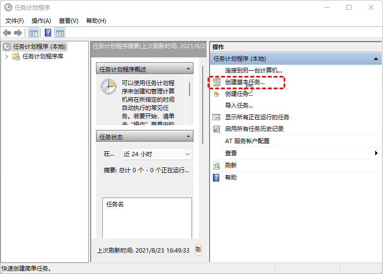 2. 單擊右側(cè)“操作”窗格中的“創(chuàng)建基本任務(wù)”。