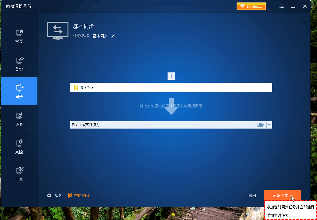 方法1需要使用命令,這對(duì)于不熟悉電腦的用戶來(lái)說(shuō)非常不友好。不友好的操作界面以及復(fù)雜的參數(shù)讓文件同步變得困難。而方法2提供的功能比較少,例如想要設(shè)置自動(dòng)同步任務(wù)還需要借助Windows任務(wù)計(jì)劃程序完成。因此為您推薦一款更專(zhuān)業(yè)的文件同步軟件—傲梅輕松備份。它是一款強(qiáng)大的備份和同步工具,它提供了以下功能讓同步變得更加靈活;