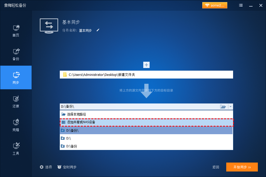 兩臺(tái)筆記本電腦如何傳輸文件和文件夾呢?傲梅輕松備份來幫您。升級(jí)到VIP之后,允許您將文件同步傳輸?shù)酵獠?內(nèi)部硬盤、NAS和共享網(wǎng)絡(luò)等。