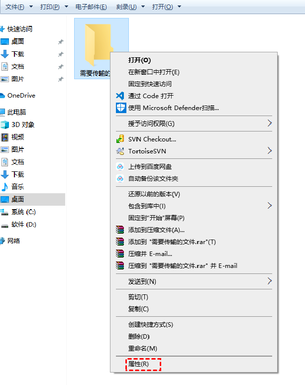 2. 右鍵單擊文件夾,然后選擇屬性。