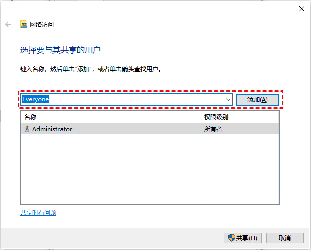 4. 從下拉菜單中選擇“Everyone”。然后單擊“添加”。