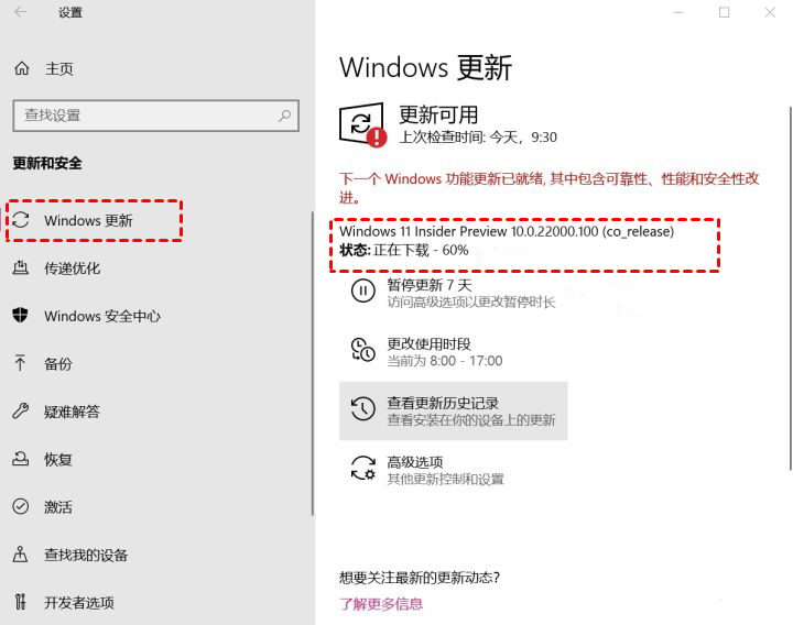 步驟2. 然后點(diǎn)擊“立即重新啟動(dòng)”或選擇“計(jì)劃重新啟動(dòng)”。重啟的時(shí)候就會(huì)自動(dòng)安裝為Win11。