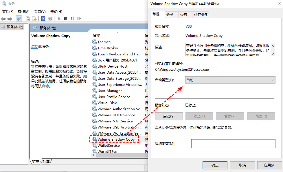 卷影復制服務錯誤0x80042302可能是禁用了VSS引起的。因此,請啟用“卷影復制”服務。