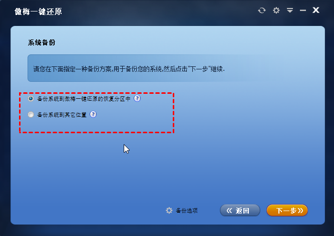 首次使用時,應(yīng)點擊一鍵系統(tǒng)備份創(chuàng)建恢復(fù)分區(qū),或?qū)⑾到y(tǒng)備份到其他位置,例如U盤。