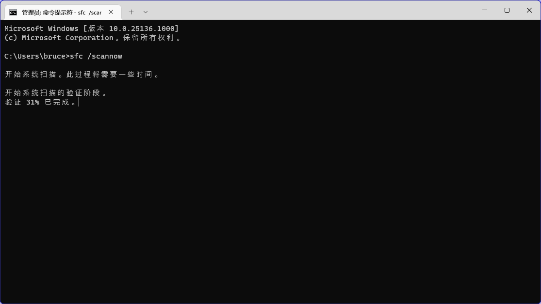 如果系統(tǒng)文件損壞或丟失,則也可能導致Win10系統(tǒng)一直轉圈圈問題。因此,您需要使用 Windows 系統(tǒng)文件檢查器 (SFC) 來幫助您檢查和修復這些損壞或丟失的系統(tǒng)文件。