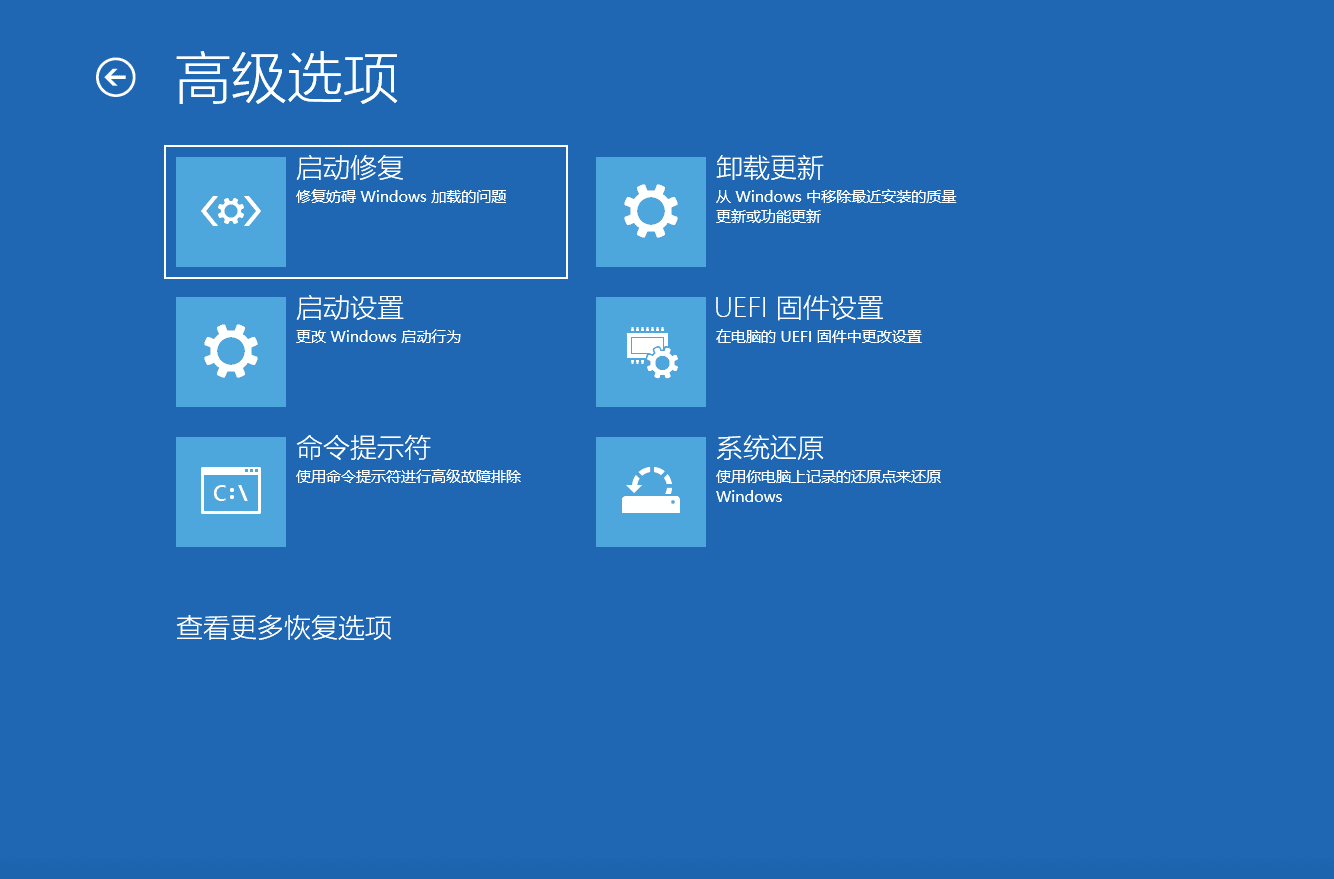 進入 Windows 恢復環(huán)境,然后單擊疑難解答>高級選項。
