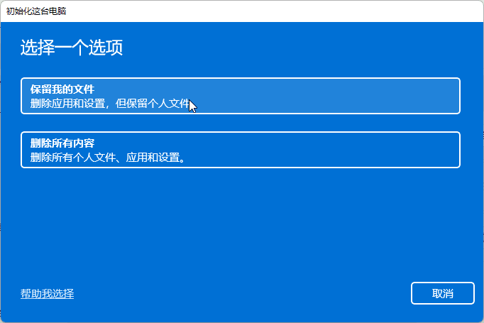 步驟 2. 在這里,您將要求在保留文件的同時重置此電腦或刪除所有內容,選擇保留我的文件。