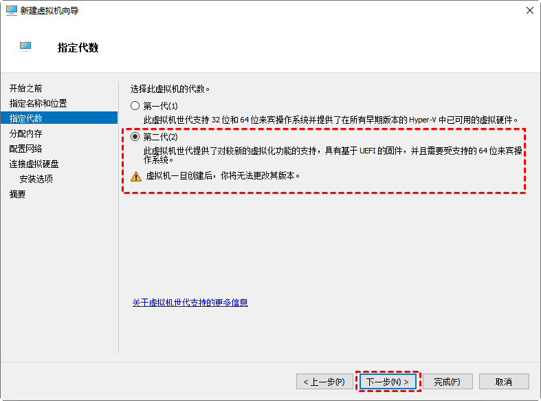 3. 在“指定代數(shù)”窗口中,可以根據(jù)實(shí)際情況選擇“第一代”或“第二代”,單擊“下一步”。