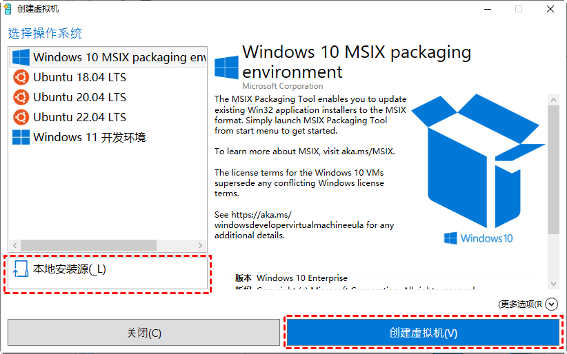 2. 選擇“本地安裝源”并找到Windows 10 .iso文件。然后單擊“創(chuàng)建虛擬機(jī)”。在Hyper-V中創(chuàng)建帶有Windows 10操作系統(tǒng)的虛擬機(jī)的整個(gè)過(guò)程僅需幾秒鐘。