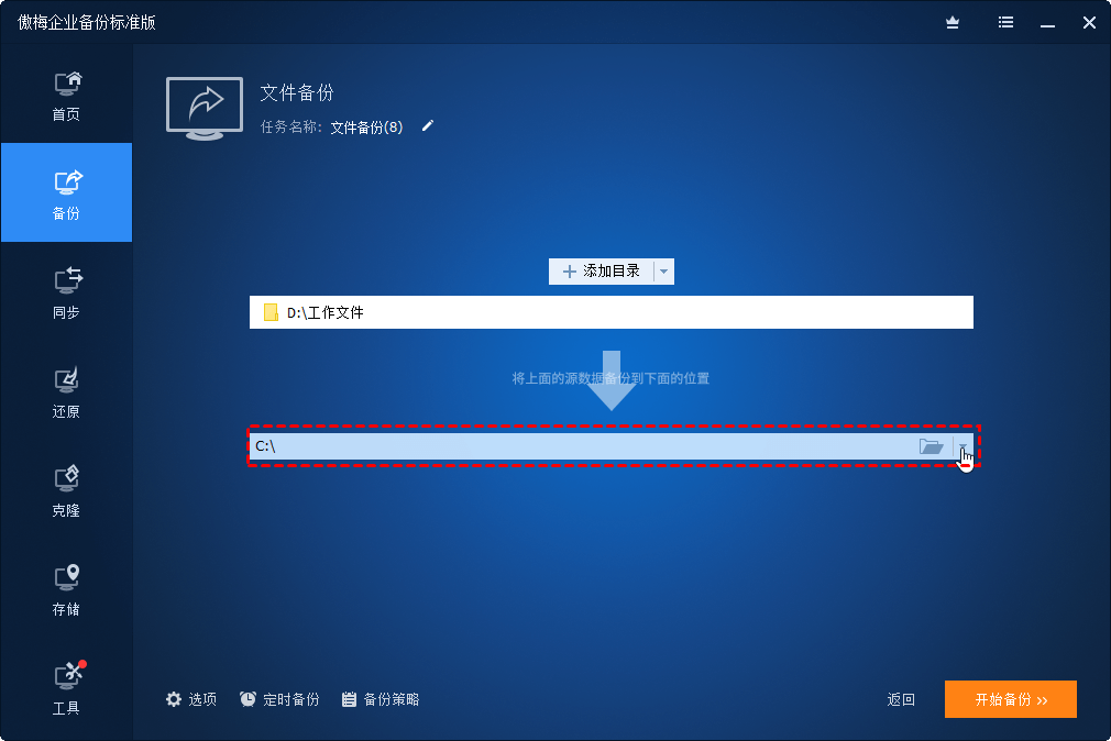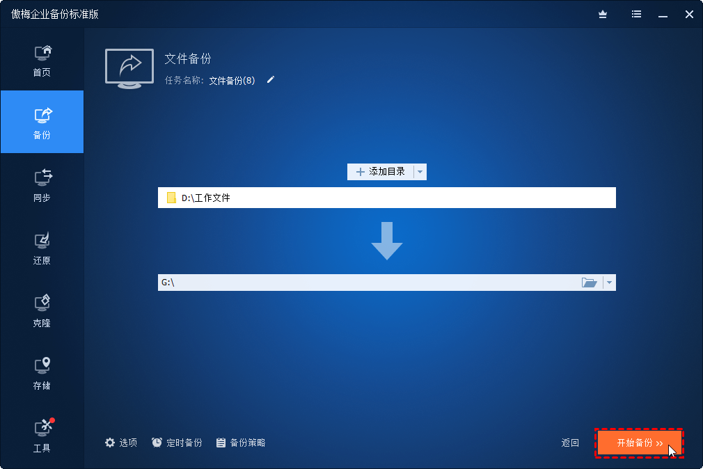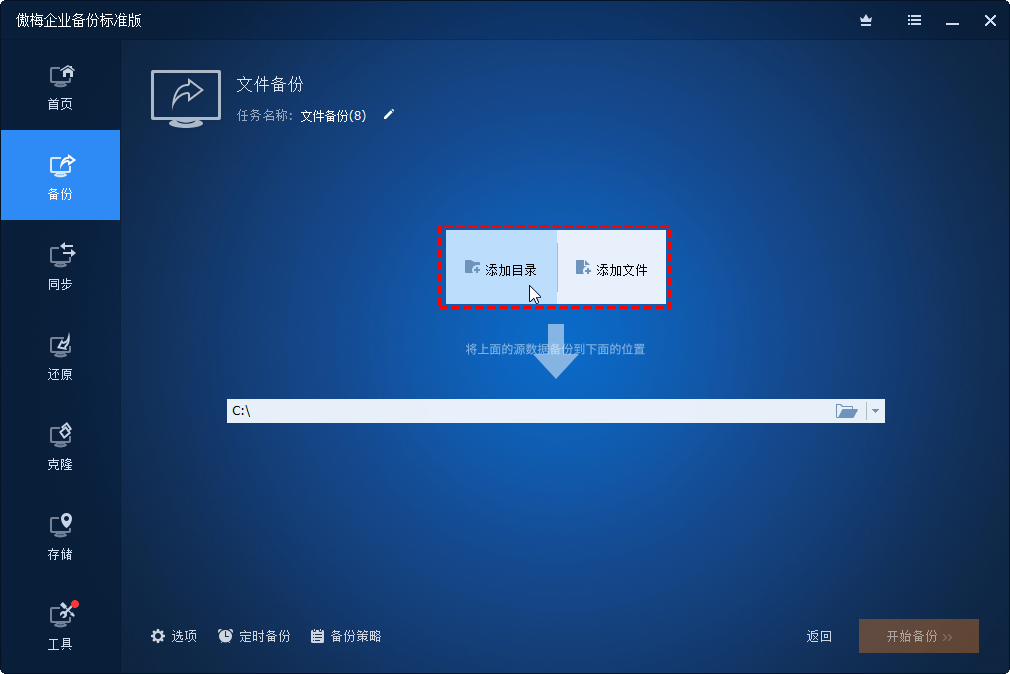 1.啟動傲梅企業(yè)備份標準版,選擇“備份”和“文件備份”。