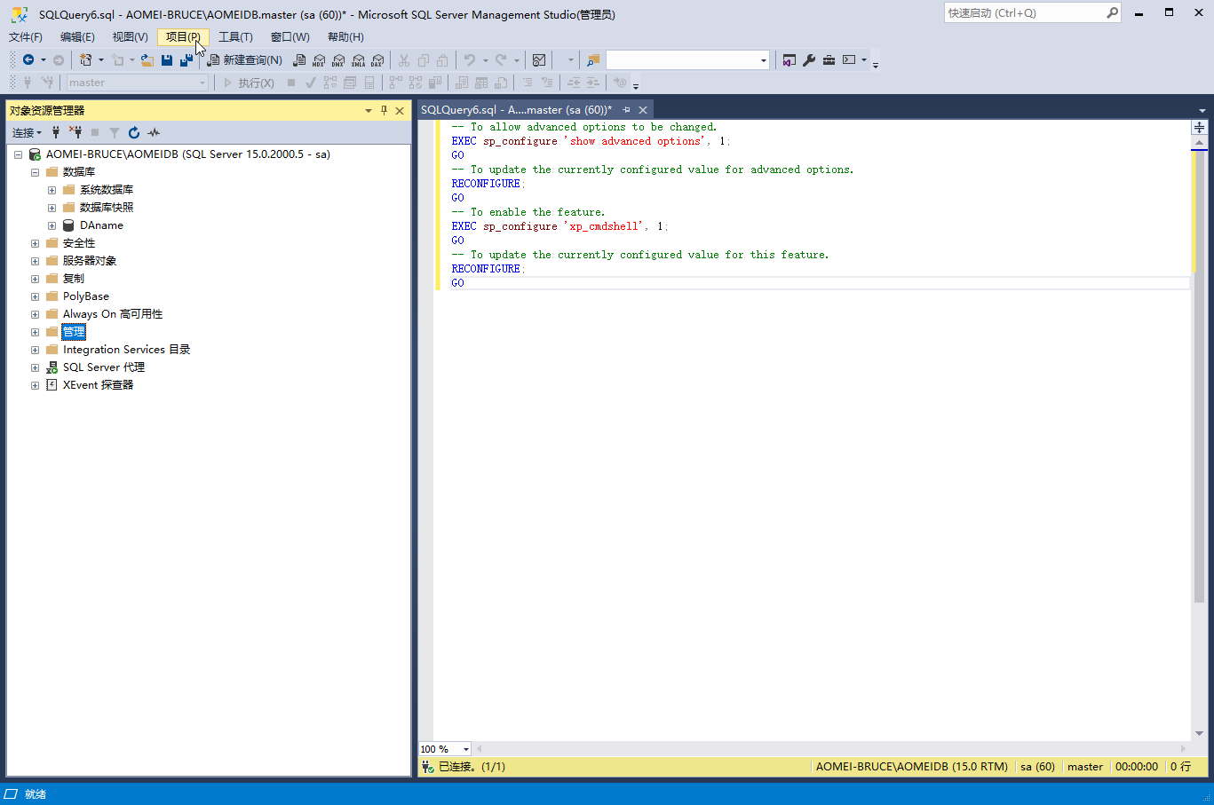 執(zhí)行 sp_configure 'xp_cmdshell', 1;