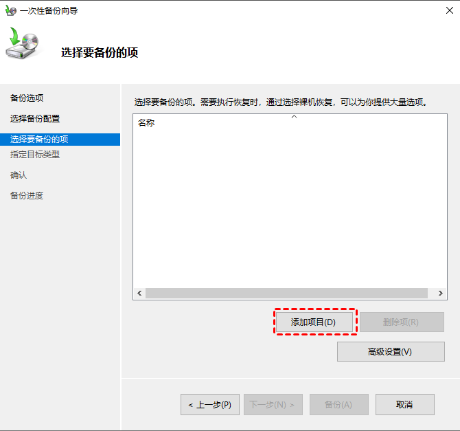 4. 單擊添加項(xiàng)目以選擇要備份的 Hyper-V 虛擬機(jī),并指定目標(biāo)類(lèi)型,然后在下一步中。您可以選擇將 Hyper-V 備份到本地驅(qū)動(dòng)器或網(wǎng)絡(luò)共享。