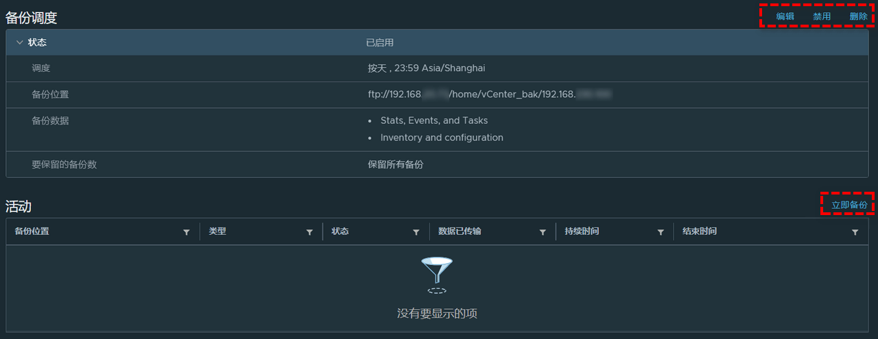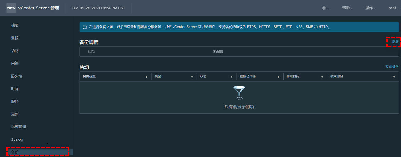 幸運(yùn)的是,如果您使用的是vSphere 6.7或更高版本,則可以使用VMware vCenter中的備份計(jì)劃創(chuàng)建基于文件的虛擬機(jī)備份計(jì)劃任務(wù)(備份支持的協(xié)議有FTPS、HTTPS、SCP、FTP和HTTP)。
