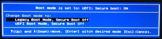 在創(chuàng)建可啟動光盤后,然后使用這個光盤引導(dǎo)電腦,這里需要你修改你的BIOS設(shè)置,將BIOS的引導(dǎo)系統(tǒng)的方式從UEFI模式設(shè)置成使用Legacy Boot Mode,如下所示(你可以查看你的主板說明書學(xué)習(xí)怎么設(shè)置):