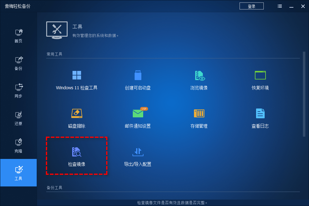 輕松備份也提供了檢查鏡像功能,通過這個功能你可以: