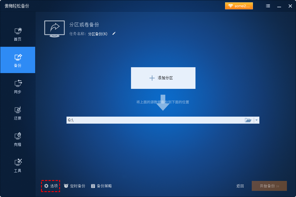 在備份設(shè)置界面下,點(diǎn)擊“備份選項(xiàng)”。