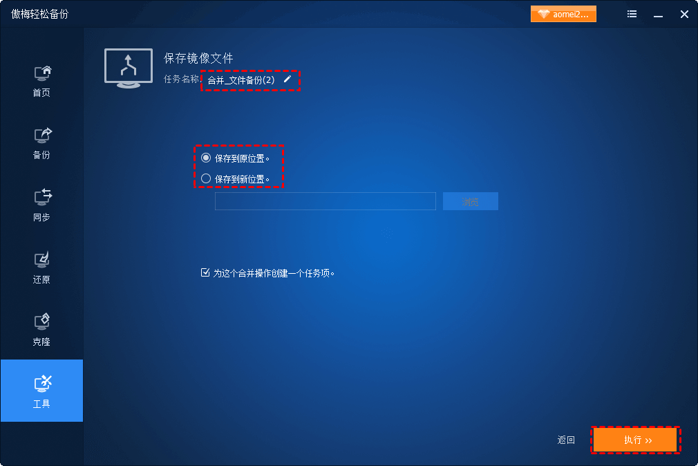 ? 在合并鏡像過(guò)程中,傲梅輕松備份不會(huì)刪除舊的鏡像文件或合并后的備份任務(wù)。