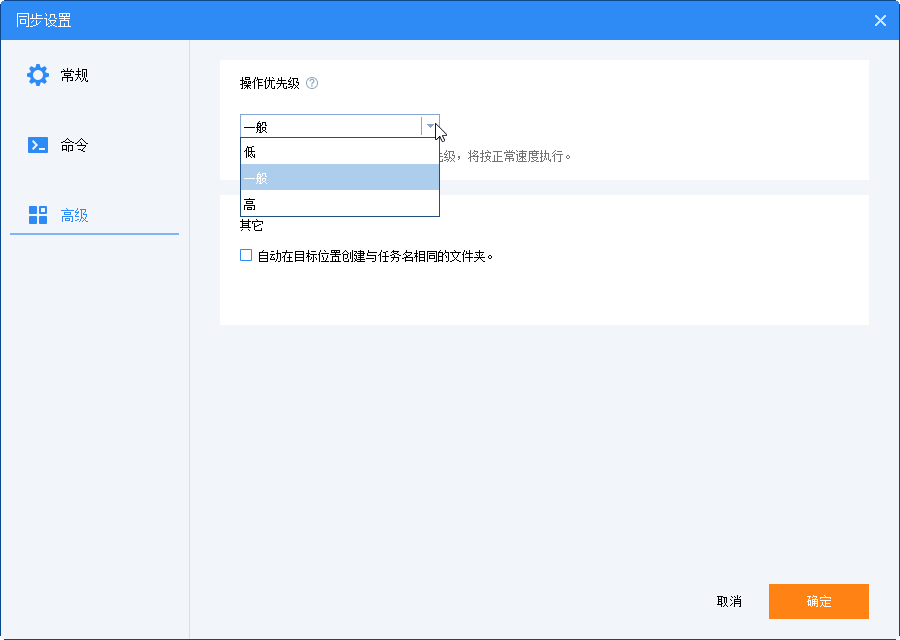 ? 操作優(yōu)先級:請選擇任務(wù)的操作優(yōu)先級。優(yōu)先級越高,任務(wù)執(zhí)行速度越快。