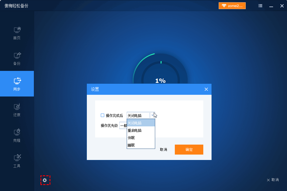 提示:同步運(yùn)行時,您可以單擊左下角的圖標(biāo)設(shè)置同步完成后關(guān)閉電腦/重啟電腦/休眠/睡眠。