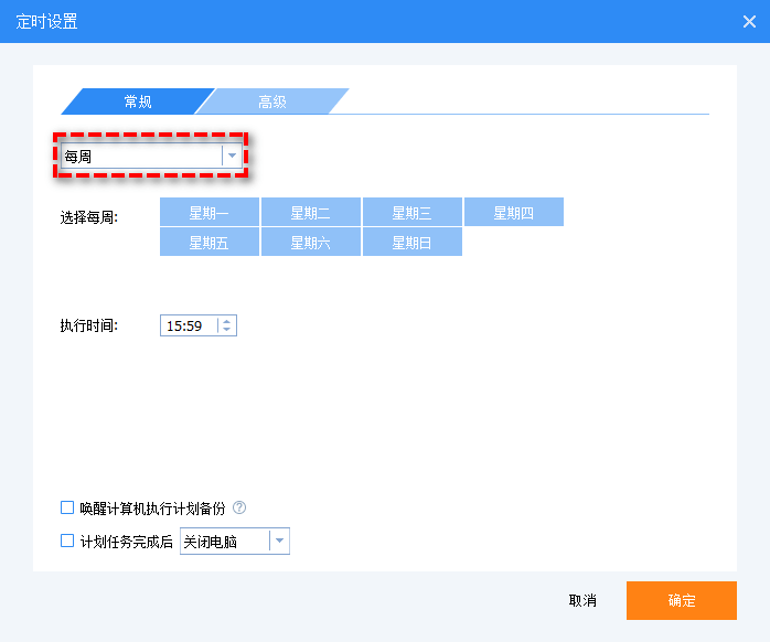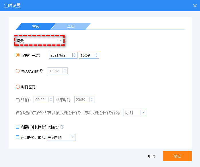 在“常規(guī)”選項(xiàng)卡中,您可以根據(jù)自己的需求來配置同步計(jì)劃模式: