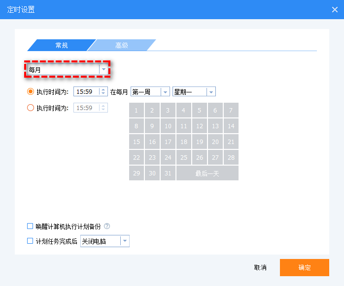 對于每日、每周和每月模式的定時(shí)同步任務(wù),您可以勾選“喚醒計(jì)算機(jī)執(zhí)行計(jì)劃備份”,然后傲梅輕松備份將在運(yùn)行同步計(jì)劃任務(wù)前2分鐘將您的計(jì)算機(jī)從睡眠或休眠狀態(tài)喚醒,此功能不適用于觸發(fā)事件與USB插入定時(shí)同步任務(wù)。