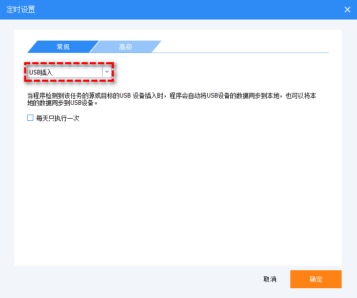 如果您選擇“每天只執(zhí)行一次”,即便您多次插入U(xiǎn)SB設(shè)備,同步任務(wù)每天執(zhí)行一次。